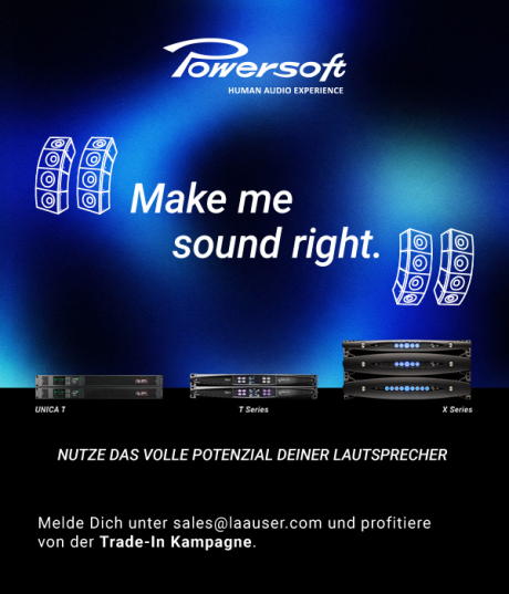 Die Aktion läuft bis einschließlich 30.07.2026 (Datum des Auftragseingangs bei Laauser & Vohl) und gilt für alle Bestellungen von Powersoft T-, UNICA T und X-Serie Verstärkern zur sofortigen Lieferung. Sie ist nicht mit anderen Aktionen kombinierbar.